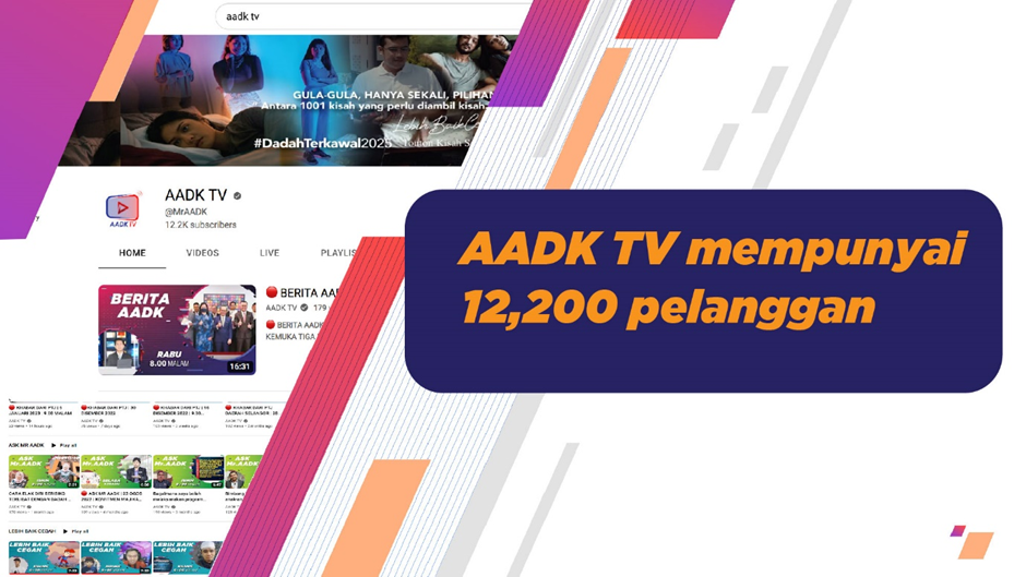 ”Saluran AADK TV menerusi YouTube telah dimantapkan lagi dengan mengetengahkan 7 segmen rancangan iaitu Berita AADK, Hi AADK, Khabar Dari PTj, Selami Jiwa Kami, Lebih Baik Cegah, Ask Mr. AADK dan Bicara AADK,” katanya.