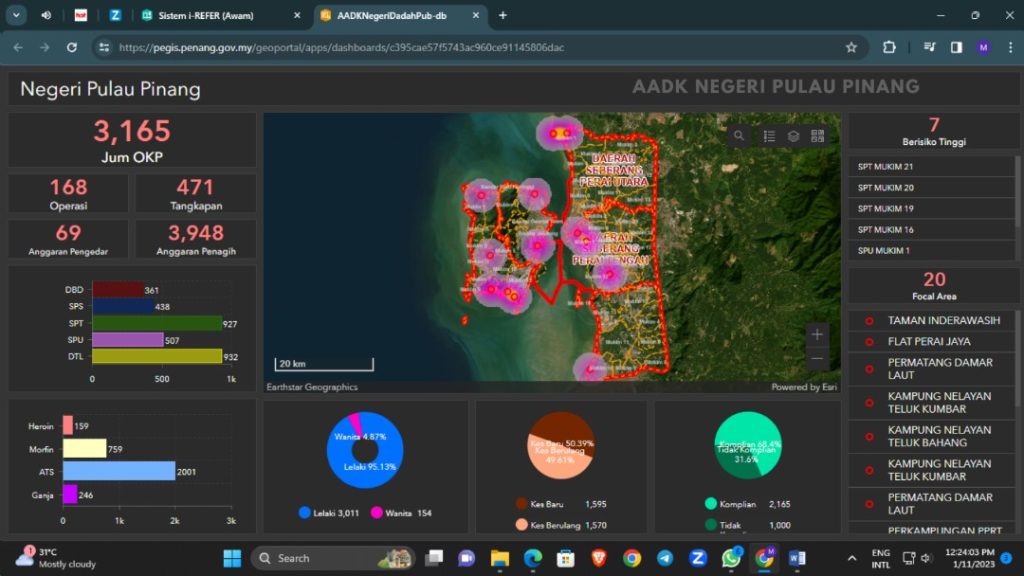 Sistem iREFER yang dibangunkan ini adalah satu sistem profiling kawasan penagihan dadah dan berisiko tinggi (KBT) di Negeri Pulau Pinang dalam bentuk digital yang menggunakan PEGIS map browser.