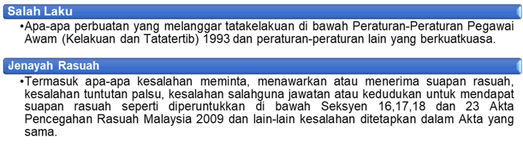 Aduan atau maklumat rasuah atau pelanggaran tatakelakuan boleh dikategorikan seperti berikut: