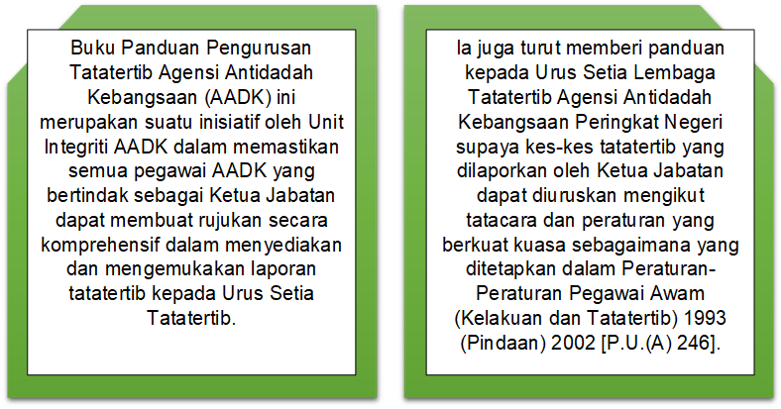 Pautan ke Panduan Pengurusan Tatatertib AADK: https://www.aadk.gov.my/dasar-akta-pekeliling/panduan-pengurusan-tatatertib-aadk/