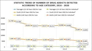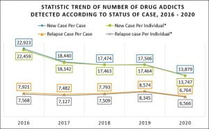 Statistic Trend Of Number Of Drug Addicts Detected, 2016 – 2020