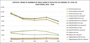Statistic Trend Of Number Of Drug Addicts Detected According To Level Of Education, 2016 – 2020