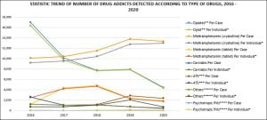 Statistic Trend Of Number Of Drug Addicts Detected According To Type Of Drugs, 2016 – 2020