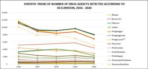 Statistic Trend Of Number Of Drug Addicts Detected According To Occupation, 2016 – 2020