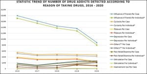 Statistic Trend Of Number Of Drug Addicts Detected According To Reason Of Taking Drugs, 2016 – 2020