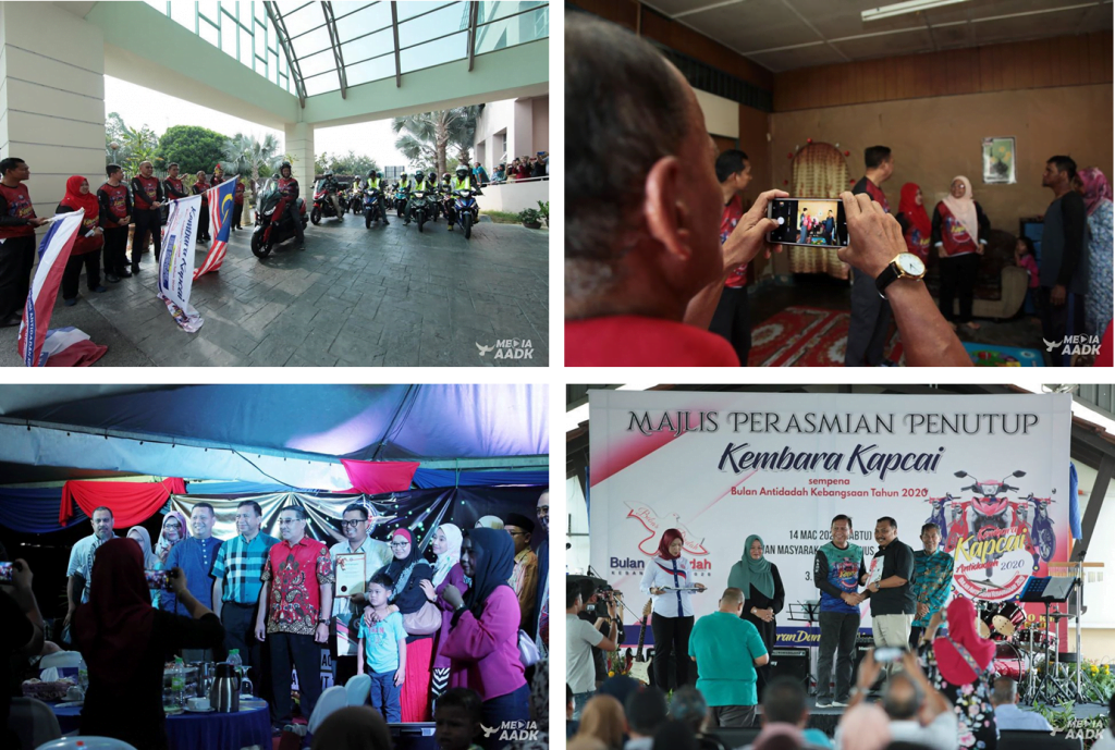 (Malay Version) BANGI, 13 Mac – Agensi Antidadah Kebangsaan meneruskan lagi program Bulan Antidadah dengan menganjurkan Kembara Kapcai AADK 2020. Program yang dijalankan selama dua hari ini adalah untuk meningkatkan perkongsian pencegahan awal dalam penyalahgunaan dadah di rumah dan kejiranan kepada golongan remaja. Program yang disertai seramai 80 orang peserta ini terdiri daripada warga kerja AADK dan juga Polis Diraja Malaysia dan majlis pelepasan Kembara Kapcai ini telah dilancarkan oleh Timbalan Ketua Pengarah Dasar, Dr.Sabri bin Zainudin Zainul.