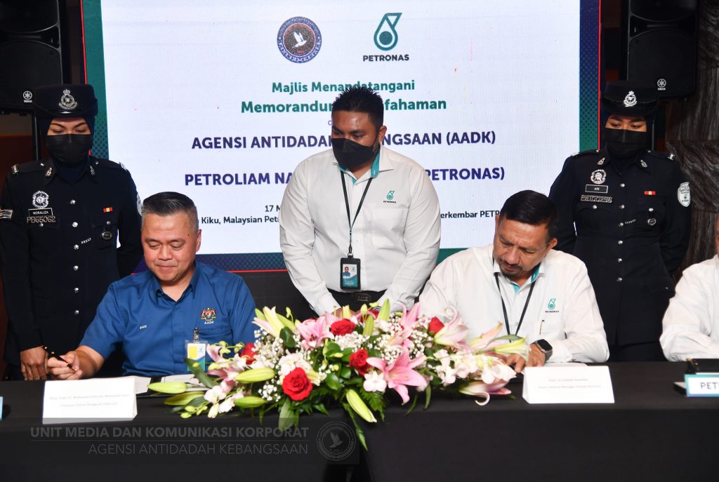KUALA LUMPUR, March 17, 2023 – The National Anti-Drugs Agency (NADA) together with National Petroleum Limited (PETRONAS) signed a memorandum of understanding (MoU) for the implementation of the Tempat Kerja Bebas Dadah (TEKAD) programme here today.