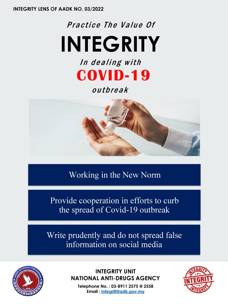 Practice the value of integrity in dealing with Covid -19 outbreak