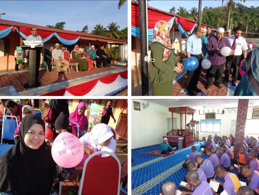 Sambutan diteruskan dengan gimik pelancaran program iaitu tiupan belon mesej antidadah oleh Pengarah dan tetamu jemputan yang lain. Klien juga diberi peluang untuk melakukan gimik tersebut bagi menyampaikan mesej antidadah masing-masing yang bakal menjadi panduan kepada kepulihan mereka.