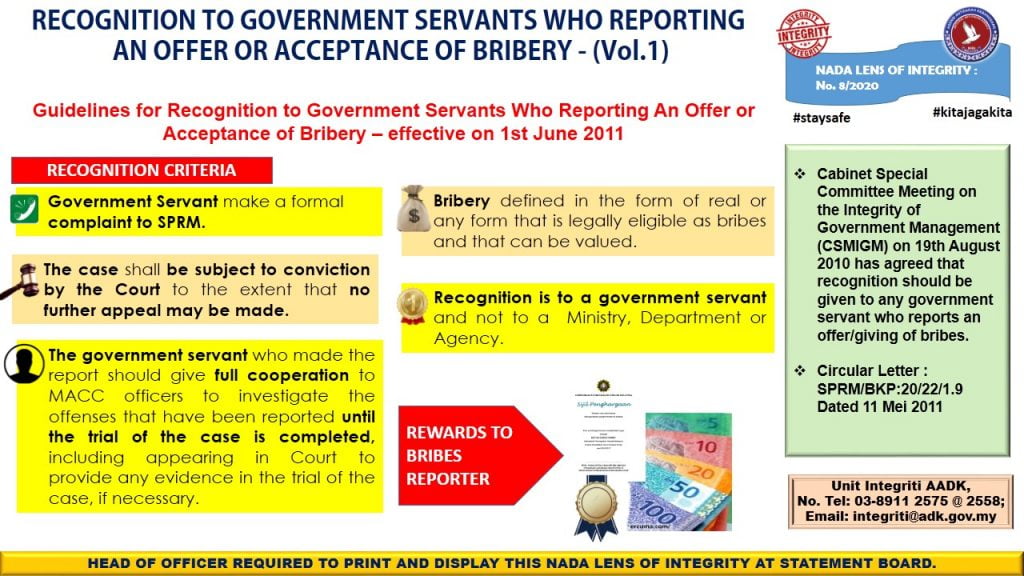 Recognition To Government Servants Who Reporting An Offer Or Acceptance Of Bribery – Vol.2