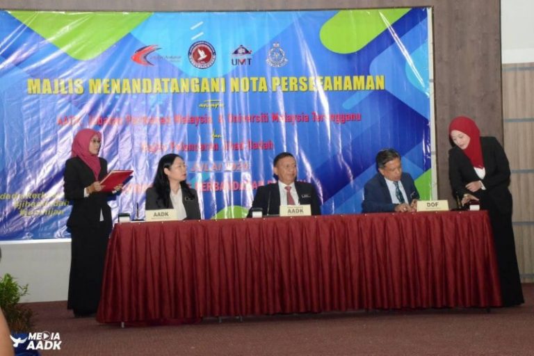 Dungun, July 6th – An event of signing a note of understanding between The National Anti-Drugs Agency (NADA) and Department of Fisheries Malaysia together with Universiti Malaysia Terengganu (UMT) was held in Dewan Majlis Daerah Dungun.