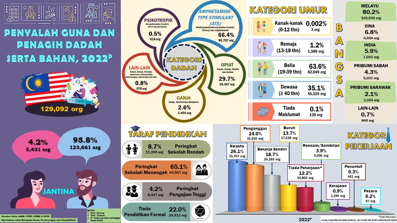 Infografik : Statistik Penyalah Guna dan Penagih Dadah serta Bahan Bagi Bulan Januari – September 2022