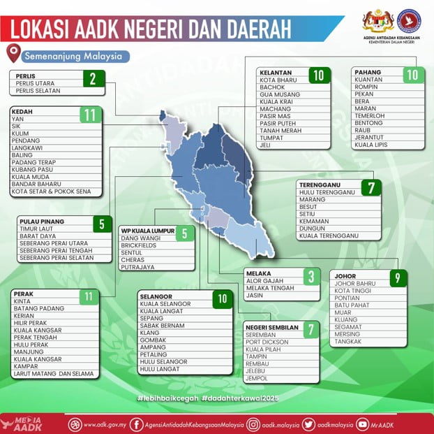 Lokasi Pejabat AADK Daerah dan Negeri (Semenanjung Malaysia)