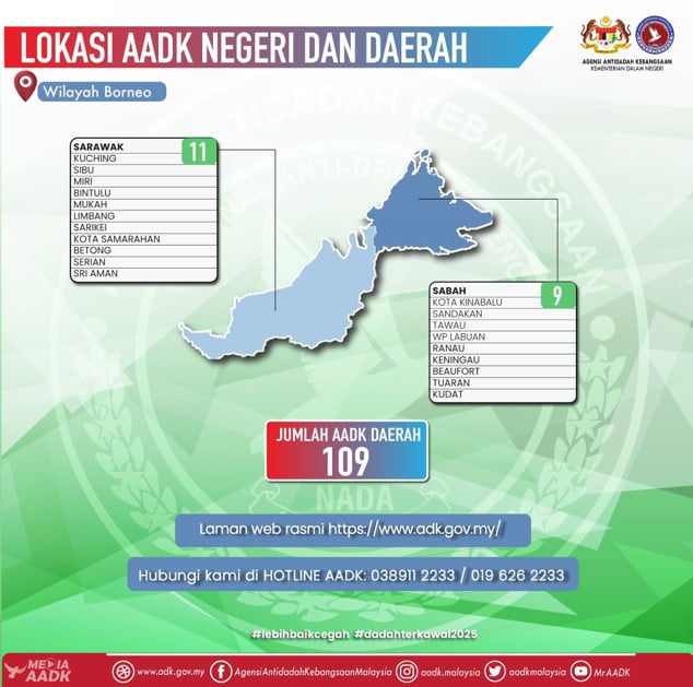 Lokasi Pejabat AADK Daerah dan Negeri (Sabah dan Sarawak)