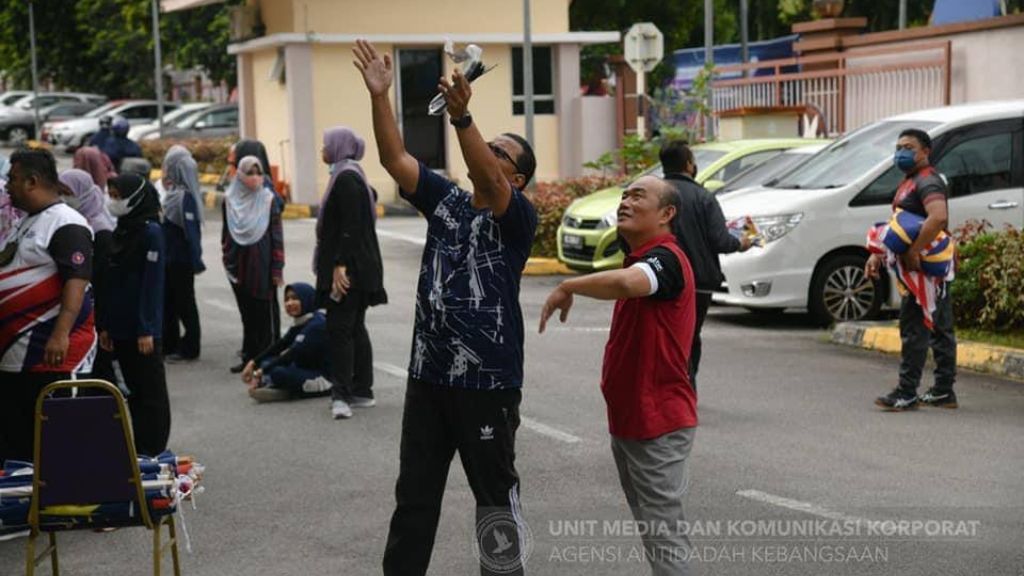 Ketua Pengarah AADK, Tuan Sutekno Ahmad Belon turut meluangkan masa menyertai aktiviti gotong-royong berkenaan untuk melahirkan semangat dan rasa cinta pada negara.