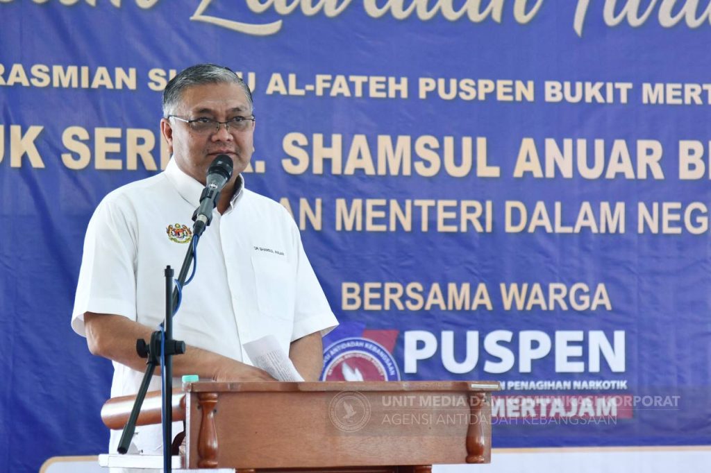 BUKIT MERTAJAM, 11 Ogos 2023 – Timbalan Menteri Dalam Negeri, YB Datuk Seri Dr. Shamsul Anuar Nasarah pada Jumaat mengambil kesempatan untuk hadir ke Program Lawatan Turun Padang dan Merasmikan Surau Al-Fateh di Pusat Pemulihan Penagihan Narkotik (PUSPEN) Bukit Mertajam, Pulau Pinang.